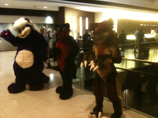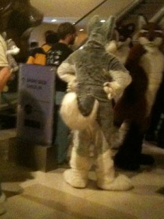 We were checking into the hotel Wednesday evening when it became apparent it was going to be a busy night. There were a number of very ‘dorky’ looking mid 20s-30s guys walking around and checking in as well. A few were just hanging out in the extremely large lounging areas in the lobby. The first spotting happened then, a giant fox was roaming the crowds. Obviously this sparked a bit of curiousity and I started looking at these ‘dorks’ a bit closer… 2 of the 4 sitting on the couches right behind my crew and I had tails. Tails… literally, a long yellow and black stripped cheetah tail and the other a black fluffy one I can only assume was a dog tail. Like hanging out of their jeans all the way to the ground, tails. Whhhhhat the heck is going on here?!?! Then I started asking the guys checking us in, and was informed that the hotel was hosting the Furfest this weekend, and close to 2000 participants would be coming. Ok… a furfest. I actually thought he said fearfest first, which is slightly appropriate as well. And then it hit me.