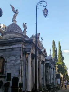 We started our ‘experiencing’ on a free tour of the city and heard a lot about the history and the past aristocratic families. Please note I said FREE. An amazing 3 hour walking tour, that was given just by tips and word of mouth advertising. The city is a total mod podge of palaces of aristocratic families (who literally brought their palace materials by boat from France) and new buildings. Side by side, all throughout the city… not just the Centro or city center. The entire area we toured, from San Martin Plaza to Recoleta and Palermo where we stayed, all had this lovely ambiance. There is a cemetery in Recoleta, an area of old money, that holds the caskets of the wealthy, famous, or aristocratic families of Buenos Aires. I cant even fathom the money spend on the final resting places of these people and entire families. Only a picture will explain how intricate and detailed this ‘mini city’ of graves/mausoleums is.