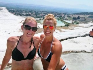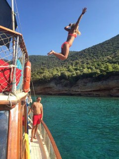 I had the hardest time picking which town we would stay inon the Turkish Riviera because they all offer such different options. But, we stayed right across the street from the marina & Bodrum castle which was nice. The hotel we stayed at, not so much. We woke up our first full day in Bodrum and headed to a tour agency (that became a big part of our time there), & were boarded aboard a traditional Turkish Gullet by 11. We sunned ourselves at the front of the boat as we went to 5 stops along the Bodrum peninsula. Beautiful clear water at every one of them. The last stop was actually a thermal pool and cave with mud to do a mud mask. It was guaranteed to make you appear 15 years younger. The word on the street is that Cleopatra stayed on that peninsula when hiding out for a number of years, and the mud & thermal water from that very cave was one of her beauty secrets. I’m not sure if it was the mud or that story (+ wine), but myself and Kate were convinced our skin felt much smoother. It was an awesome day on the boat & we were sleeping like babies by 9pm.