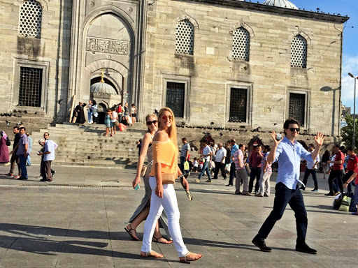 -A story showing how quickly we learned about what I’ll call ‘Turkish hospitality’. We arrive to Istanbul and are just weird from the jetlag. We get our visa, clear customs, & get a cab to the hotel all very easily. I had an address and name of our hotel, which apparently didn’t mean much to the cab driver. He dropped us at a street blocked to traffic and pointed in a direction and told us 2 minutes. Um ok. So we walk, hauling our luggage behind us, fully covered and hot in our clothes because that’s what we thought we were supposed to do in a Muslim country. It took about this long into the trip for us to realize by the stares that we are in fact, ‘exotic’ here. We walked for 5 minutes and still had no idea where we were going. So, we stopped and asked 2 guys. They didn’t know. However, they went into a restaurant and asked to try and help us. When they didn’t work, they went and asked and asked until finally a cab driver knew where we should go. Didn’t didn’t speak English but were not giving up until they had helped us out. Try that in NYC and see how many people give you the finger. We wheeled our luggage up a hill to a hotel we never would have found and slept. We woke for dinner and then went back to sleep. Oops.