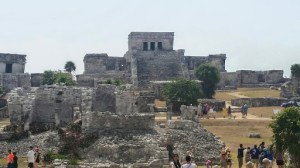 The next day we toured Tulum ruins. We ended up booking a tour for $45 each that included transportation, a guide, and also a trip to the Grand Cenote. Bus options are also available on ADO buses, and would have been more efficient. I enjoy hearing stories and the history though, and was thankful for our mediocre guide. The ruins are very lackluster compared to the ones I have visited in Belize and Guatemala. These ruins are only a small enclosed area primarily used for priests and doctors, and contained just a few buildings and temples. I find the Mayan culture interesting, specifically their architecture and the detail. The main temple at this site was designed so that the sun would shine through a small window at each seasons solstice and hit one of the smaller buildings behind it illuminating a specific part of it. It would only work 4 times a year at the specific solstice. The building also supposedly whistles loudly when the winds are hurricane strong. The main temple is closest to the Caribbean sea built on a cliff. The most impressive thing about this site is the backdrop and contrast of the ruins against the sea.