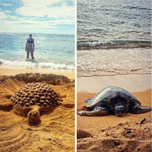 Our own sand turtle we built was a hit with a few tourists (apparently our ‘local’ beach was also a tourist spot to see the turtles). A bus dropped off at one point and a group of Asians hurried off cameras in hand and hustled excitedly to our turtle. Only after snapping a couple of photos and getting close did they realize it wasn’t a real turtle. We were watching the entire thing unfold from our tree, this was definitely a highlight on the day. One guy even turned and told us, ‘I’m a Japanese TV star’ as we laughed at them & our booby-trap turtle set up.