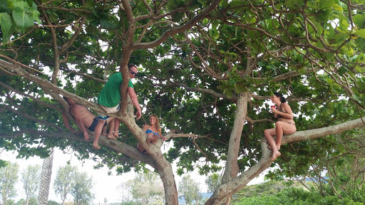 After our adrenaline rush of an afternoon, relaxing on an empty beach waiting for sea turtles was welcomed. We napped, we walked, we got bored and built a sand turtle, we climbed a tree and chilled up there for a while, and finally… we went and bought booze & tuna poke. The determination to see the turtles was there. But after 2 hours, our attention span was not. We were very careful not to disturb the turtles along the shore that kept poking their head out of the water, until we started with the vodka lemonades. Around sunset we finally threw in the towel and went for a swim. Of course that’s when a giant sea turtle decides to come ashore. It was quite the sight, and picked the spot right where an intimate wedding was taking place.