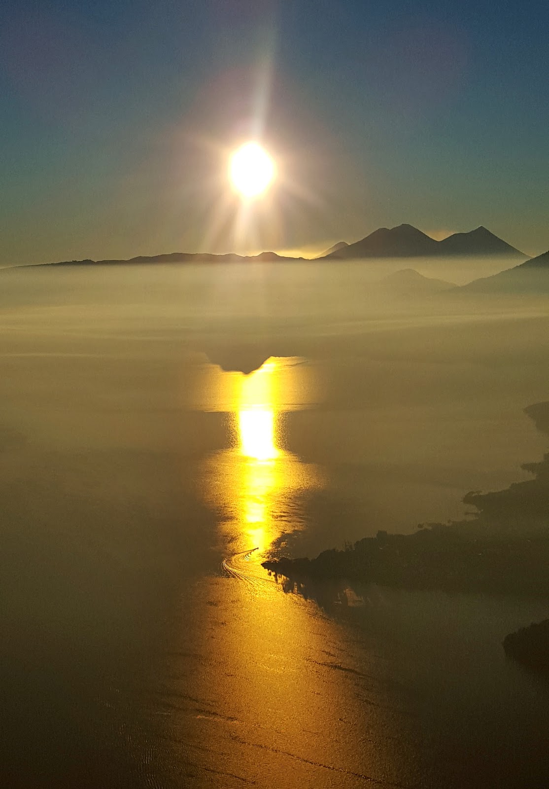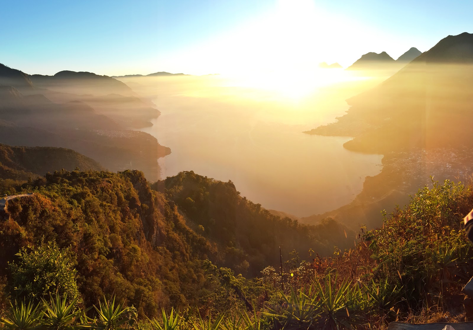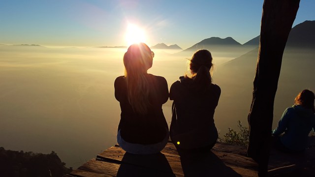 The outlines of the neighboring volcanoes and mountains with the lake spread out before you, and 2 visible cities below is pretty cool. Then the sun continues to rise and you realize that you are actually well above the clouds. The colors as it makes its way over the mountain were beautiful and reflect just perfectly off the lake. Again, I’ll simply never forget it. The local who hiked up just to make us (& another group of 4) coffee on a bonfire just added to it!