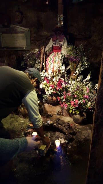 This is when we learned about Masheemon, or Saint Simon to a gringa like me. I can’t possibly go into as much detail as he did, but I’ll give a brief because these people truly believe in this and its fascinating. There is a small statue dressed in traditional clothes that the Mayans believe is a saint that will return to you in fold whatever you leave at his statue.
