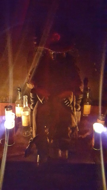 So, you light a candle and make your wish and either leave what you wish for, or leave an offering (apparently the Saint prefers cigars and liquor… not joking). So, you see these vigils set up at a couple of places around town and sure enough there are liquor bottles around or cigars in the statues mouth. There is one in the Lake Atitlan village of Santiago that is very interesting. There is a brotherhood that keep track of this particular Masheemon. Once a year he changes houses. The way they pick the house, and add another man to the brotherhood is by essentially having a human football game with the statue as the football. Only the brotherhood can partake, and they run through the streets of this village trying to tackle whoever has Saint Simon. Whatever house the statue falls in front of is the house which hosts his vigil for 1 year. Meaning, they allow visitors whenever, and are supposed to ‘taste’ or use whatever is left for the Saint. We never made it to Santiago, but we did find a couple of Masheemons in Antigua that we were able to see and leave our offering for… obviously.