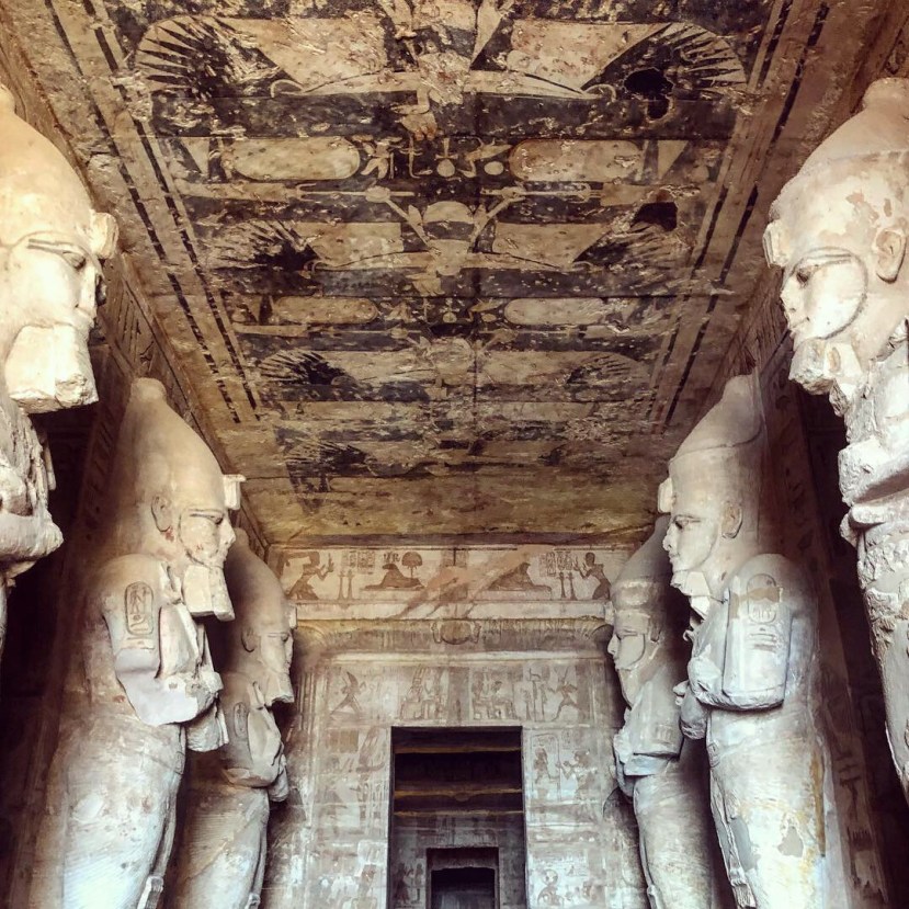Abu Simbel is a major player in the Egyptian temple game. Good ol Ramses II was one of the most beloved King’s and was known for all of the buildings that he ordered. My opinion from what he has left us is that he was beloved by himself most of all, and I think I saw his statue throughout Egypt more than all other statues combined. He lived to be in his 90s, so that’s a lot of buildings and statues. Abu Simbel has to be the best tho. It’s built on the Sudan border, like literally across the manmade lake is Sudan. The location was prime to set an example of Egypt’s wealth and power in ancient times to the enemies who live over the border. So Ramses had giant versions of himself carved into a mountain. Four of himself to be exact, and then four more on his wife, Nefertari’s, temple right beside it. She did get 2 statues built in between his, and was the first queen to have her own temple.