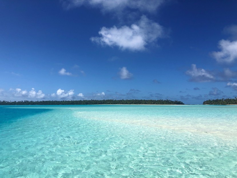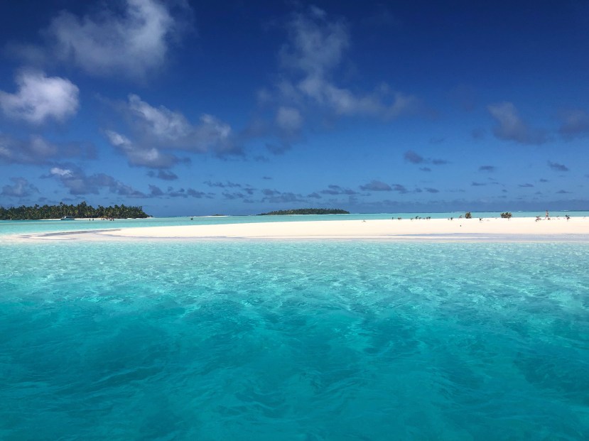 Paradise came in the form of the lagoon surrounding Aitutaki and the small islands dotted in it. With names like honeymoon island and one foot island, these white fine sand beaches were the perfect end of the road from the long sandbar trails that gracefully rose above the shallow turquoise waters. We snorkeled in a spot that had giant clams that I was unaware the Cook Islands are even known for. Maybe it was the surprise factor, but I’ve never seen anything like them. I couldnt tire myself out from free diving down and seeing the psychedelic colors inside their open mouths. One would be shades of blue, the next orange, and it seemed so bright and colorful that they would surely glow in the dark. When I got close and created a current of water towards them they would start to close up. I should mention these clams were anywhere from 1 foot to 3-4 feet across. Sooooo cool. We came up from the ocean drop off we snorkeling at and could simply walk the long distance to the island closest to us (though we chose the quicker route and got on the boat).