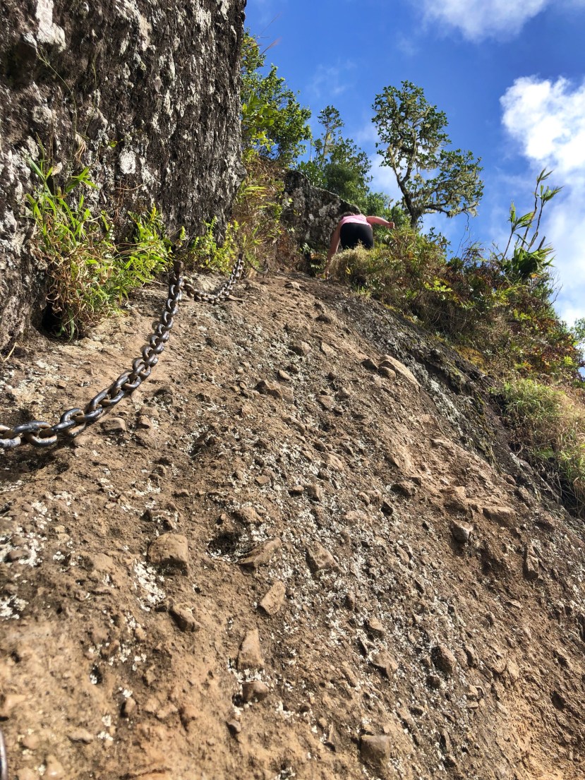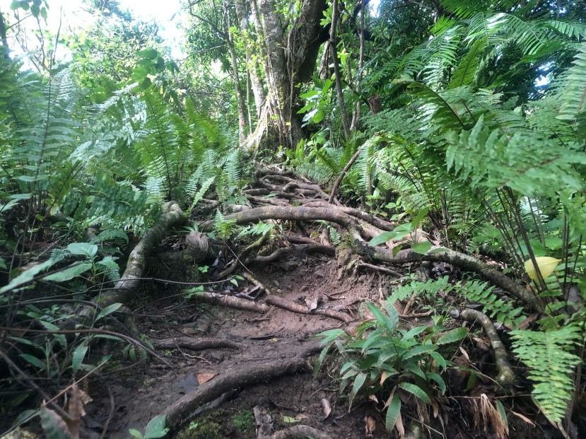 Andrea, our self proclaimed last-in-line hiker decided we weren’t coming this far and not climbing the dang needle, and off she went without a word and spider monkey’ed straight across that chain and hauled herself up the ropes. Shane and I exchanged a look of, ‘well shit’, and were off behind her. This is the day we elected her Chief Wild Card, as it was a complete wild card move for her to not say a word and go rappelling up a cliff face. It was worth it though, and we were very thankful to our chief for leading us to a spot of great beauty afterwards. We thanked the old man as well. The trek was challenging, made more so by the mud and slippery conditions. We were pretty beat up & muddy by the time we made it back down (ahemmm… some more than others, I didn’t fall just had dirt caked all over my face and hair from wiping sweat away). It took us 4 hours total with plenty of photo breaks and relaxing at the top. A must-do on the island if you’re somewhat active (or in a walking club)!
