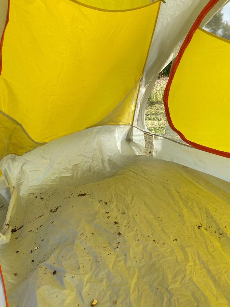 But we didn’t. The inconvenience, and also the quitting aspect kept us with our tents pitched, especially after talking to the owner of the land who said there are no wild boars, but people’s hogs that roam around. We also agreed that I would sleep in Johna’s tent to help her get some actual sleep/comfort, and we would put most of our stuff in my tent since it was legit waterproof.