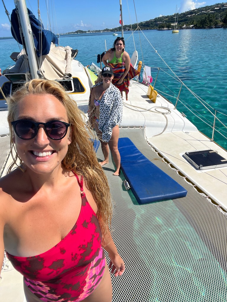 Part 2 was Tahiti, but I can’t really speak on its behalf as we stayed on a sailboat for our 1 night there. We booked our stay on Airbnb, and while the translation for the listing was quite bad, the reviews were good and we decided to gamble and book it. It was wonderful in that the host picked us up in his dinghy at 11am to check in so we had our groceries and a full day on a boat ahead. It was a surprise in that we realized the French host lives on the boat and would be staying with us. We rolled with the punches tho, and thanks to google translate ended up with one heck of an experience. He ended up sailing us to a secluded cove (which we paid $30 each) where we anchored and were able to have front row for a sunset while we snacked on our charcuterie board we threw together and drank our Tahitian rum. We cooked burgers for lunch and ahi tuna for dinner, and really just made ourselves at home with our new friend Stephane. We cooked enough for him to join us, because how awkward to just be eating while he is in his bedroom next door, and he told us (mostly through google translate) about his life and being an engineering professor on land on Tahiti (we think?), and we met his Canadian fiancé via FaceTime. He even played his saxophone for us at the end of the night. He wasn’t very good, but we got a good giggle out of it. The entire experience was an adventure. His next stop on his boat is Cuba (we think?).